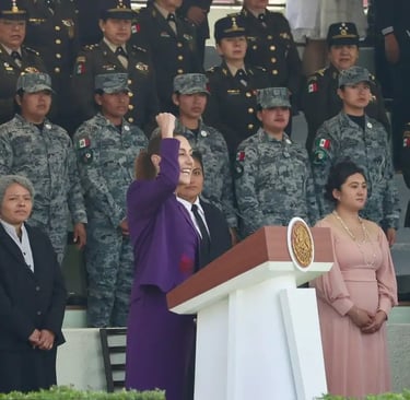 Durante una ceremonia realizada en el Campo Marte, la mandataria —en su calidad de comandanta suprema de las Fuerzas Armadas— dirigió un mensaje a cientos de mujeres integrantes del Ejército Mexicano, la Fuerza Aérea Mexicana, la Secretaría de Marina y la Guardia Nacional, así como a cadetes del Heroico Colegio Militar.