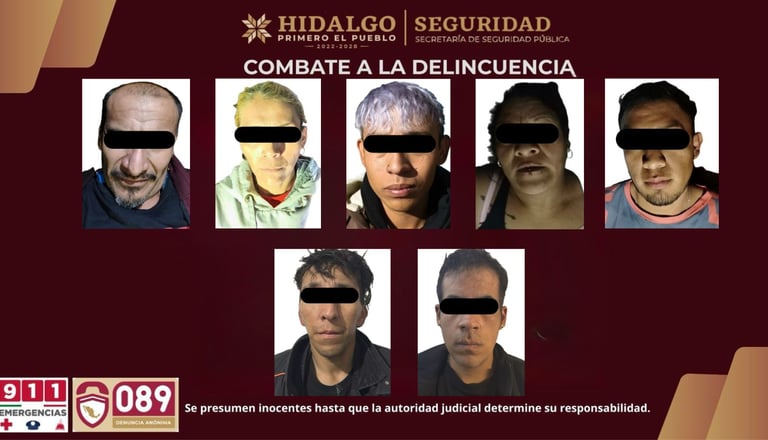 Autoridades estatales y federales lograron la detención de siete personas presuntamente relacionadas con actividades de narcomenudeo en el municipio de Tizayuca. Entre los asegurados se encuentra un sujeto apodado “El Narizón”, identificado como posible líder del grupo delictivo.