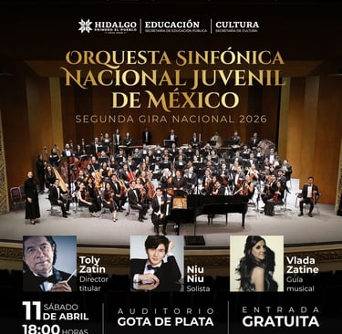 La Secretaría de Educación Pública de Hidalgo (SEPH), en conjunto con la Secretaría de Cultura, anunció la presentación de la Orquesta Sinfónica Nacional Juvenil de México (Osinjuve), la cual se llevará a cabo el próximo 11 de abril a las 18:00 horas en el Auditorio Gota de Plata.